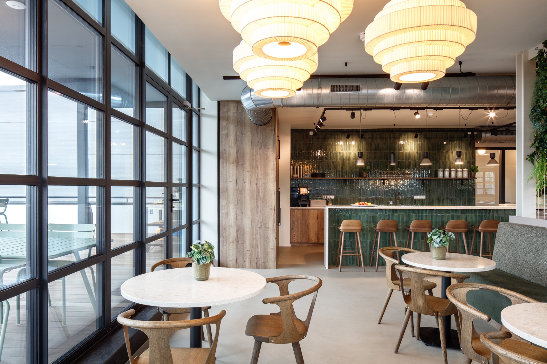 At the heart of the building is a generous company canteen a place for daily lunches, informal meetings and presentations extending seamlessly onto a spacious rooftop terrace. Equipped with an outdoor kitchen, the terrace offers room for the entire team and serves as a natural gathering place, from everyday use to Friday afternoon drinks.